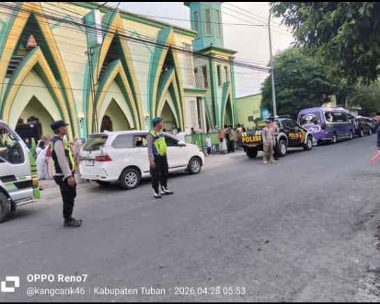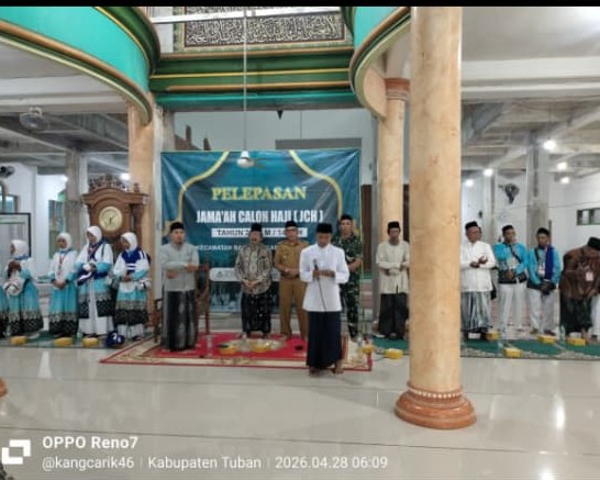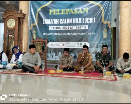 Suasana penuh khidmat dan haru mewarnai acara pelepasan 44 Jamaah Calon Haji (JCH) Kecamatan Bangilan yang digelar pada Selasa 28/4/2026 pagi di masjid besar Al Falah Kecamatan Bangilan, Kabupaten Tuban, Jawa Timur.